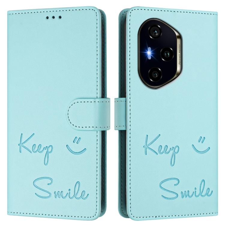 Funda de Cuero Rfid con Relieve Sonriente para Honor 300 Pro 5G y 300 Ultra 5G (Verde Menta)