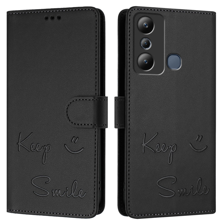 Funda de Cuero Rfid con Relieve Sonriente para Infinix Hot 20I X665E (Negra)