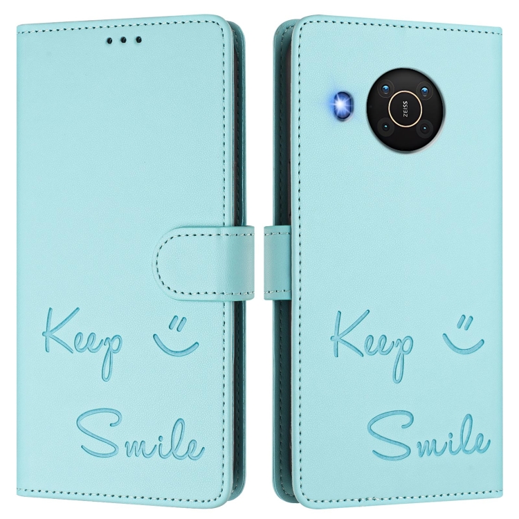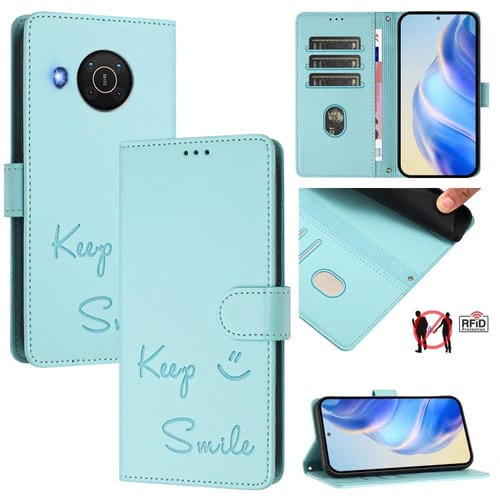 Funda de Cuero Rfid con Relieve Sonriente para Nokia X20/X10 (Verde Menta)