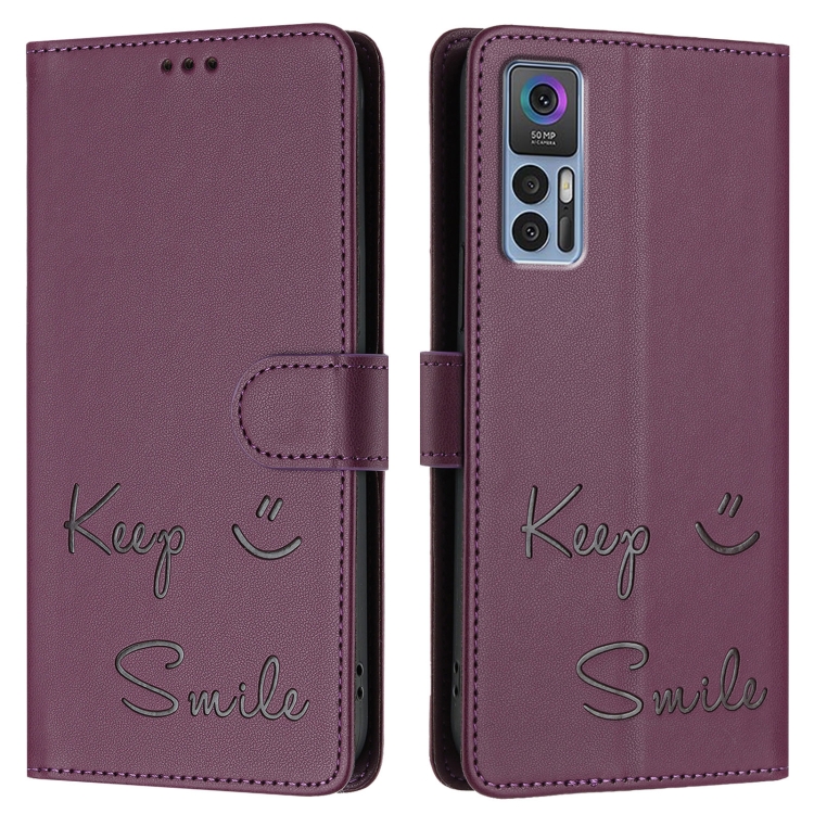 Funda de Cuero Rfid con Relieve Sonriente para TCL 30 4G/30 5G/30 Plus (Violeta)