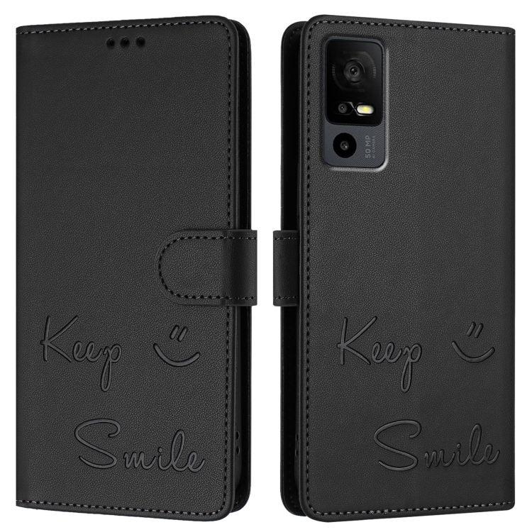 Funda de Cuero Rfid con Relieve Sonriente para TCL 40 R 5G (Negra)