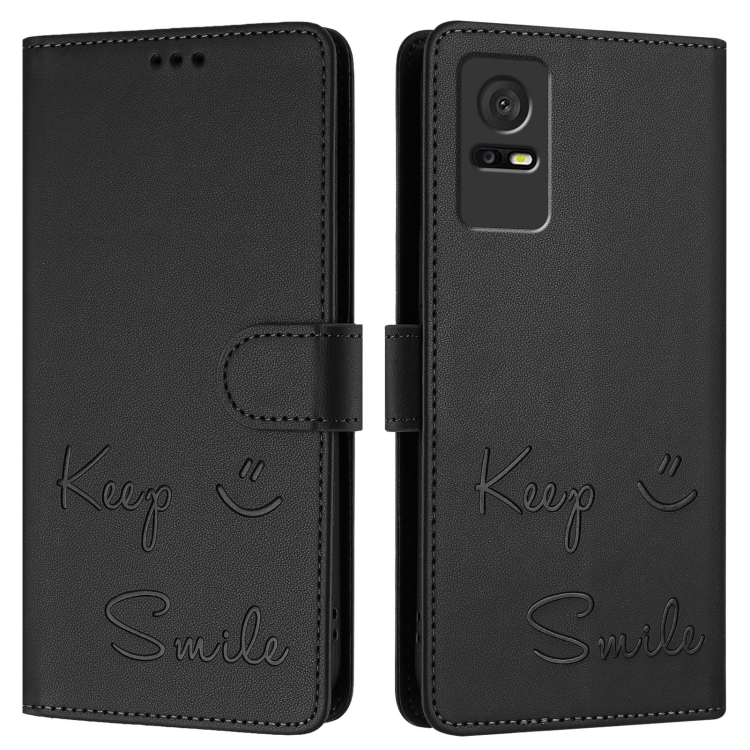 Funda de Cuero Rfid con Relieve Sonriente para TCL 405/406/408 (Negra)