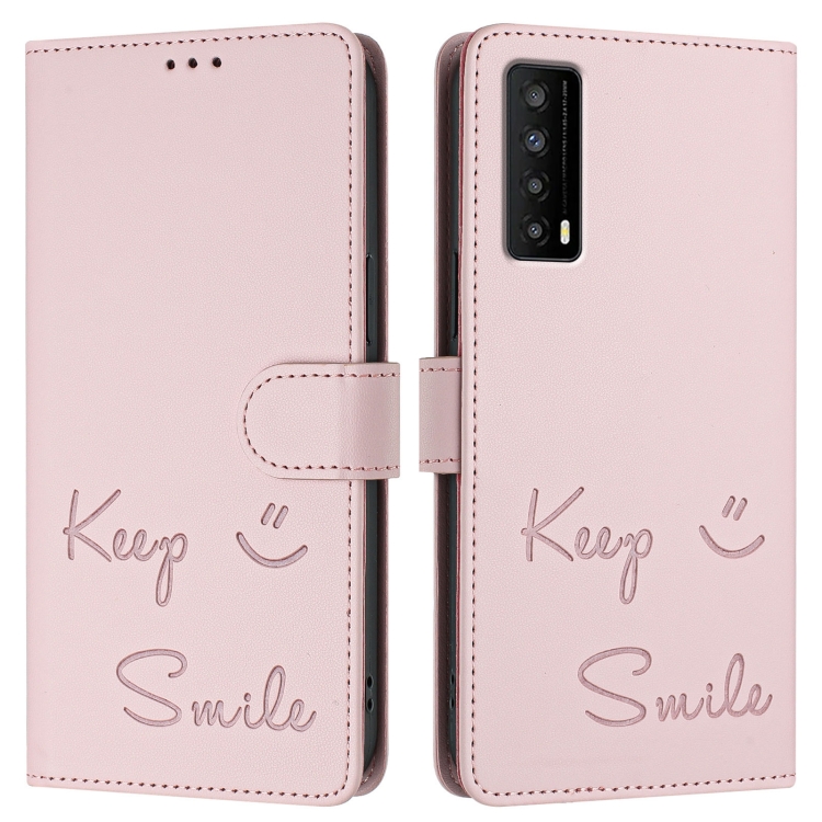 Funda de Cuero Rfid con Relieve Sonriente para TCL Stylus 5G (Rosa)