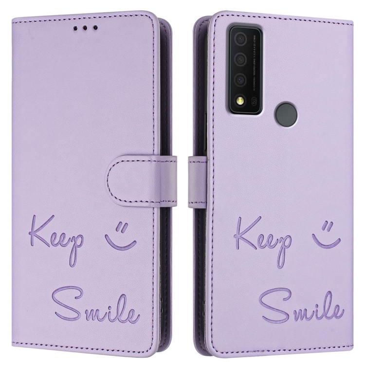 Funda de Cuero Rfid con Relieve Sonriente para TCL 30 Xe 5G (Morado Claro)