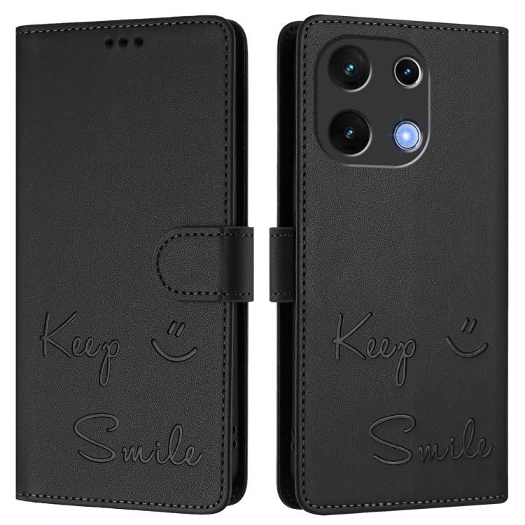 Funda de Cuero Rfid con Relieve Sonriente para Umidigi Note 100 (Negra)