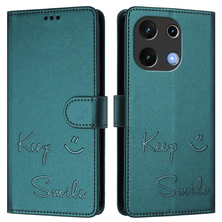 Funda de Cuero Rfid para Umidigi Note 100 con Relieve Sonriente (Verde Pavo Real)