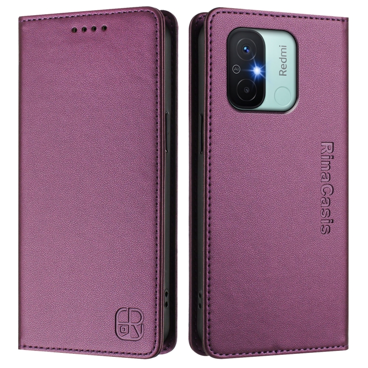 Funda de Cuero Rfid con Succión Magnética y Doble Pliegue para Redmi 12C/11A Rc01 (Violeta)