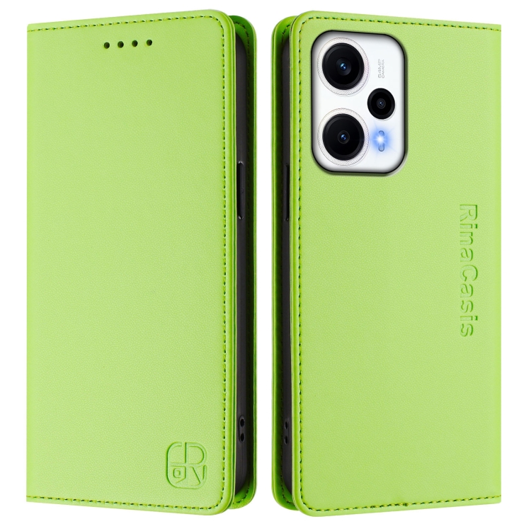 Funda de Cuero Rfid con Succión Magnética y Doble Pliegue para Redmi Note 12 Turbo 5G/Xiaomi Poco F5 Rc01 (Verde Hierba)