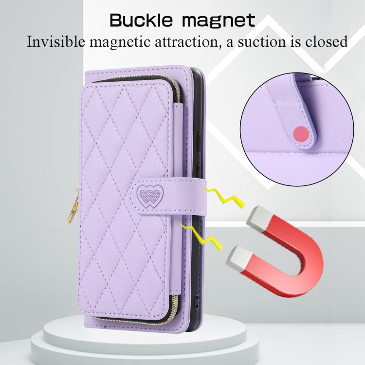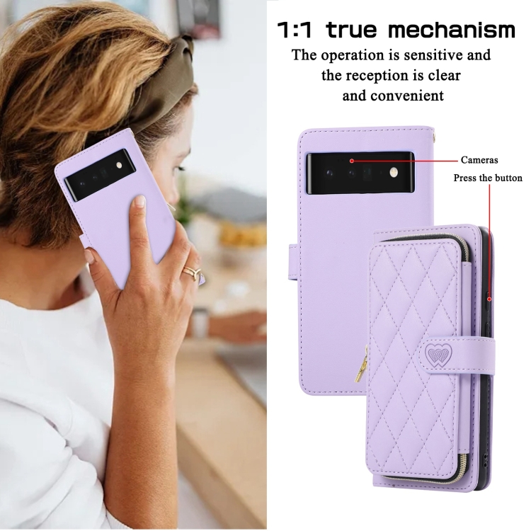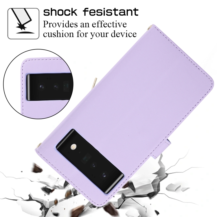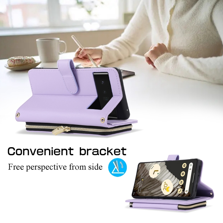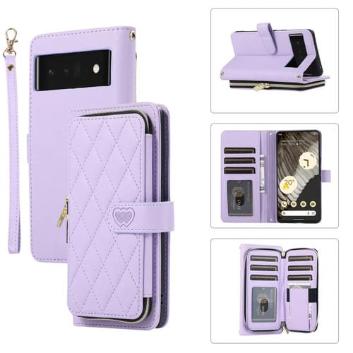 Funda de Cuero Tipo Billetera con Cremallera Completa y Diseño Rombal para Google Pixel 6 Pro (Morado)