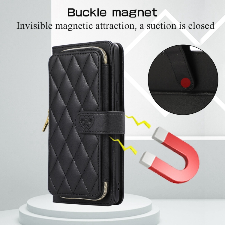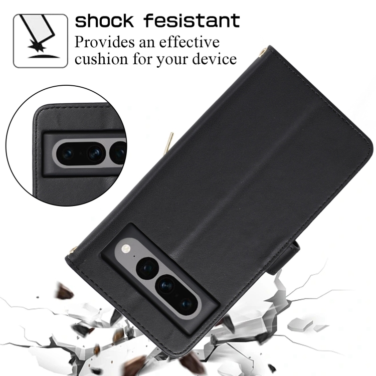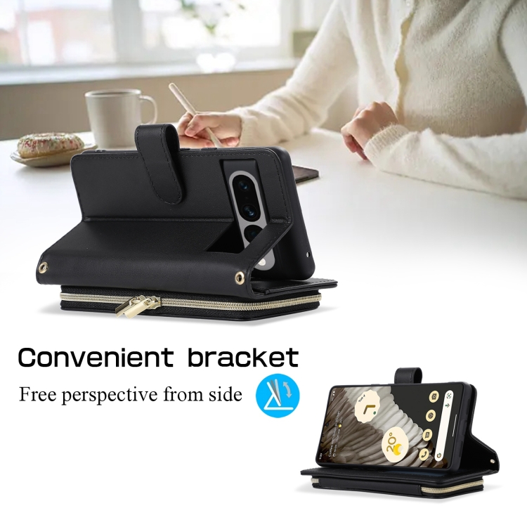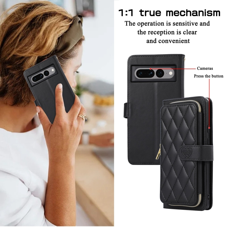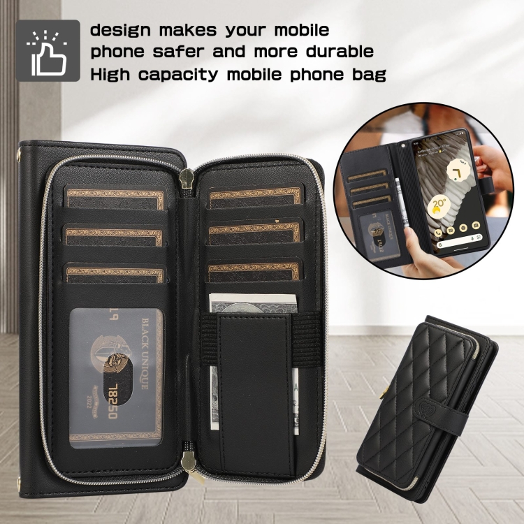 Funda de Cuero Tipo Billetera con Cremallera Completa y Diseño Rombal para Google Pixel 7 Pro (Negra)