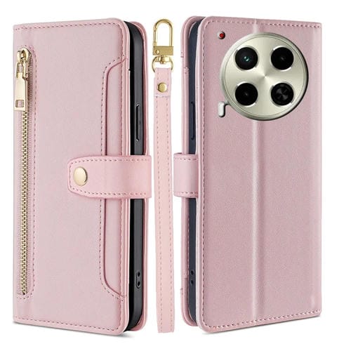 Funda de Cuero Tipo Billetera con Cremallera y Textura de Oveja para Tecno Camon 30 Lite (Rosa)