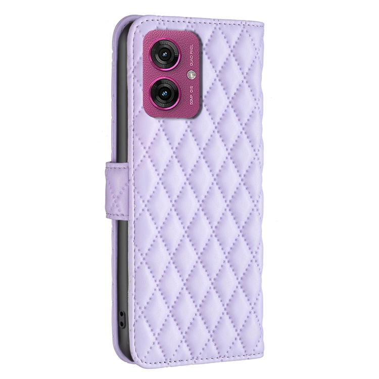Funda de Cuero Tipo Billetera con Tapa y Diseño Celosía Diamante para Motorola Moto G55 (Morado)