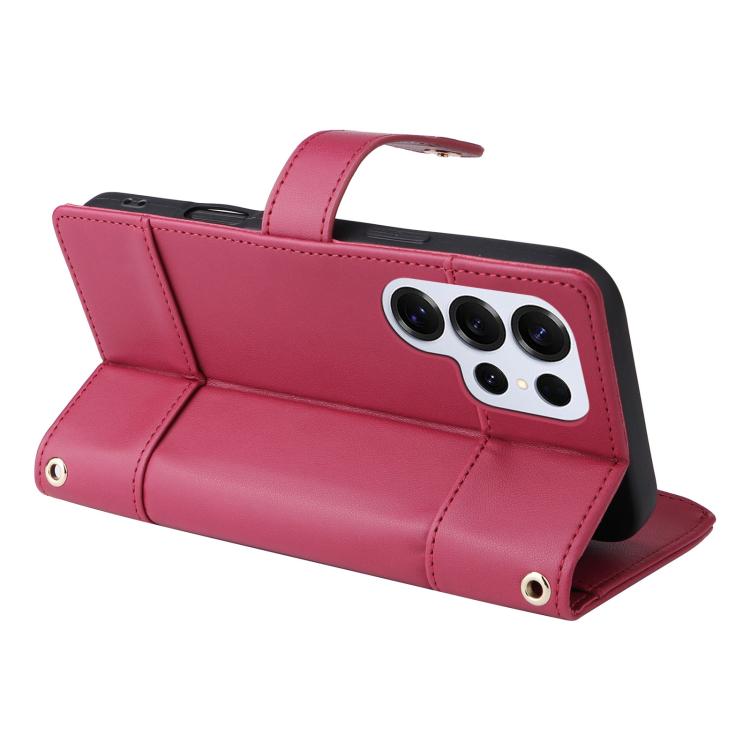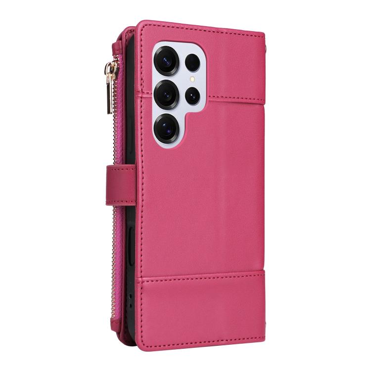 Funda de cuero tipo cartera con cremallera y bloqueo RFID para Samsung Galaxy S25 Ultra 5G (roja)
