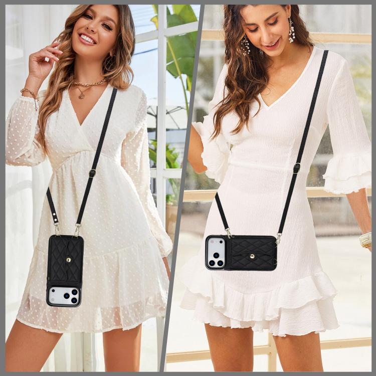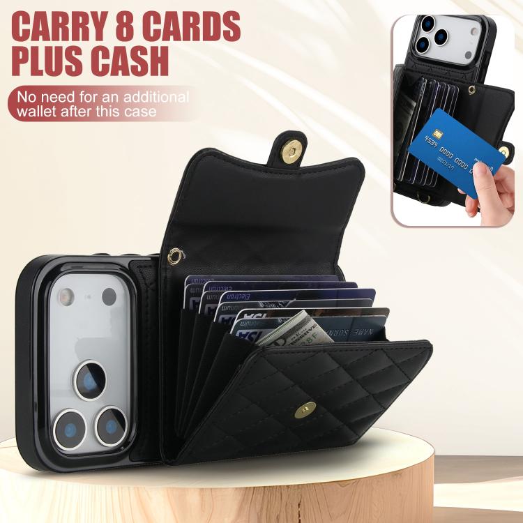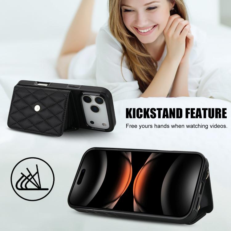 Funda de cuero tipo cartera horizontal con diseño rómbico cruzado para iPhone 17 Pro Max (negra)