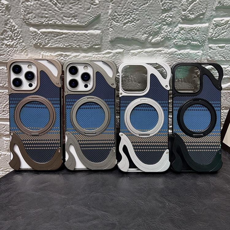 Funda de metal sin marco para iPhone 16 Pro Max con rotación de 360 grados y soporte MagSafe (color titanio)