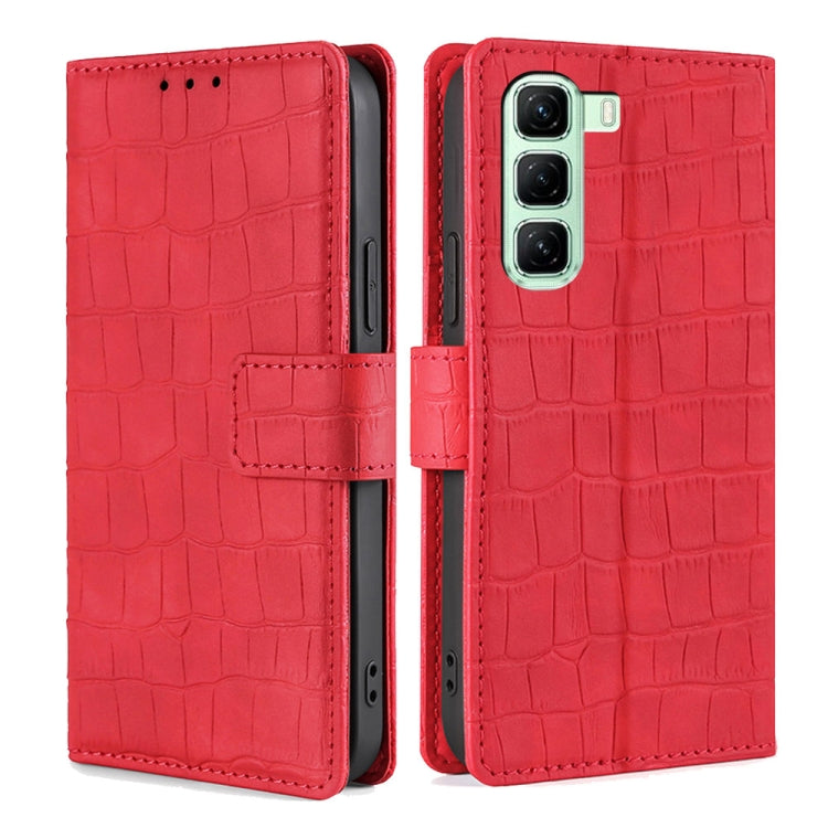 Funda de Piel con Cierre Magnético para Infinix Hot 50 4G (Rojo) Diseño Cocodrilo