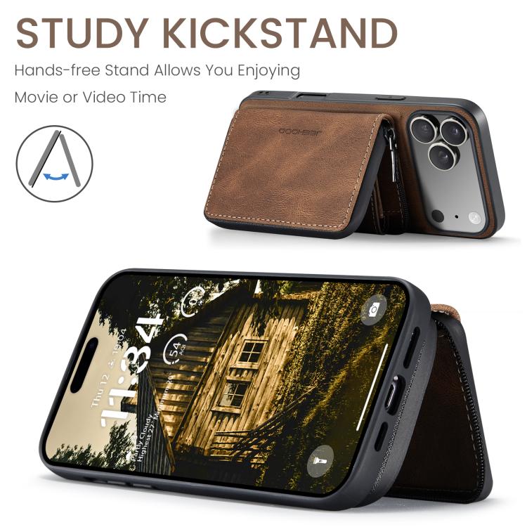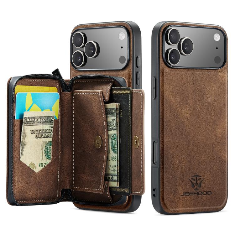 Funda de piel con cremallera magnética horizontal tipo libro JEEHOOD J02 para iPhone 17 Pro Max (marrón)