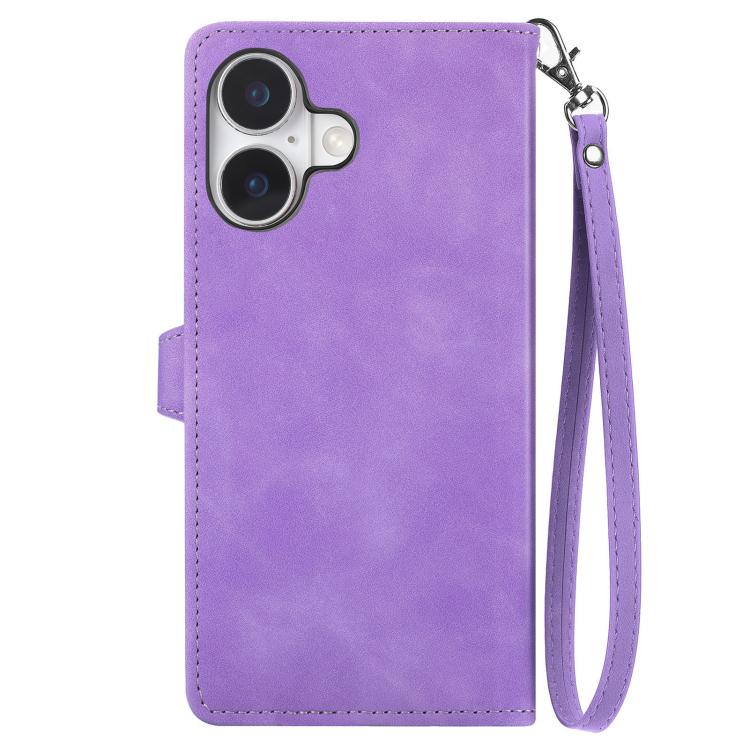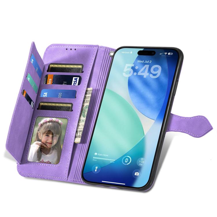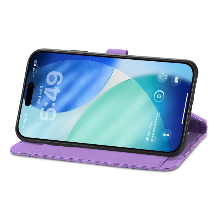 Funda de piel con cremallera y diseño floral en relieve para iPhone 17 (morado)