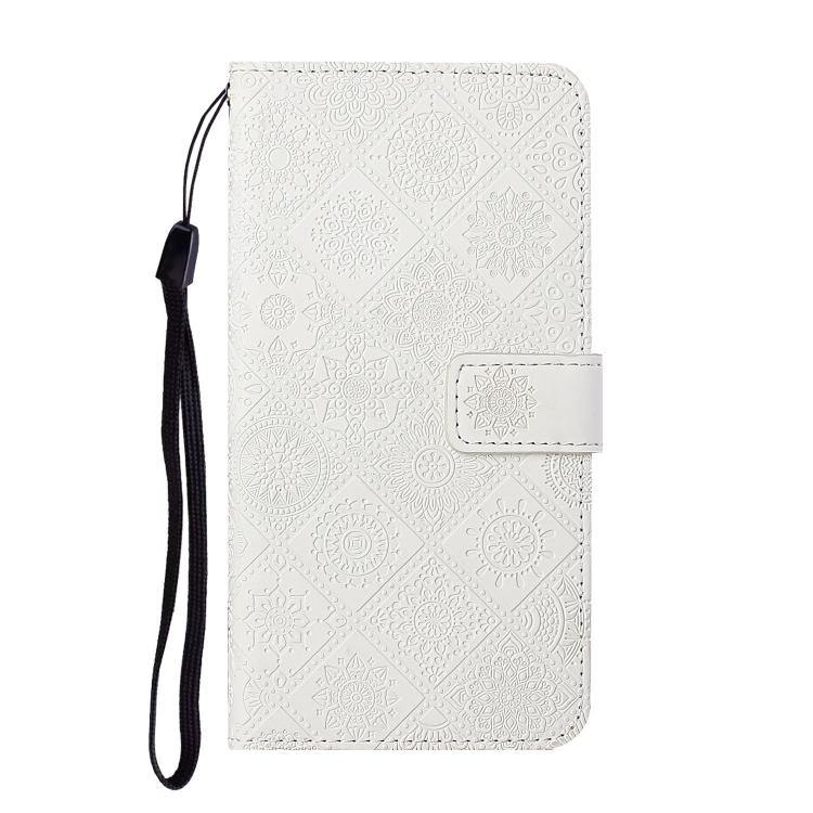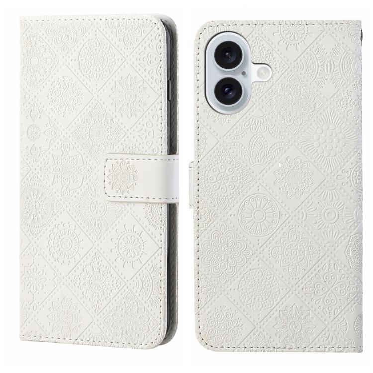 Funda de piel con estampado étnico en relieve para iPhone 17 (blanca)