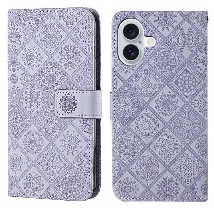 Funda de piel con estampado étnico en relieve para iPhone 17 (morado)