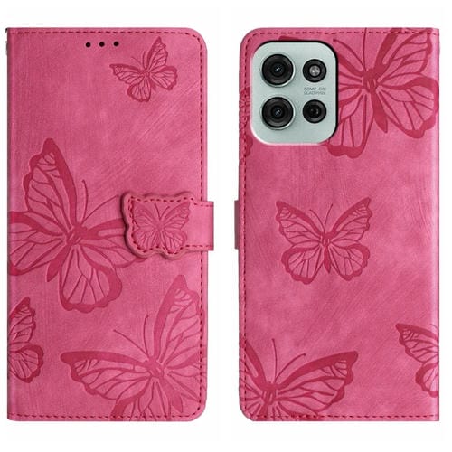 Funda de Piel con Relieve de Mariposa para Motorola Moto G75 (Rosa Rojo)