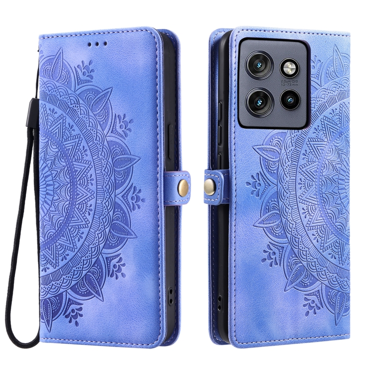 Funda de Piel con Relieve Totem para Motorola Edge 50 Neo (Morado)