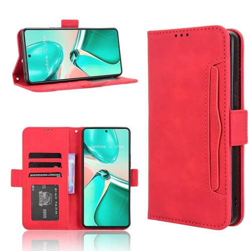 Funda de Piel con Textura de Becerro y Ranuras para Tarjetas para Asus Zenfone 12 Ultra (Roja)