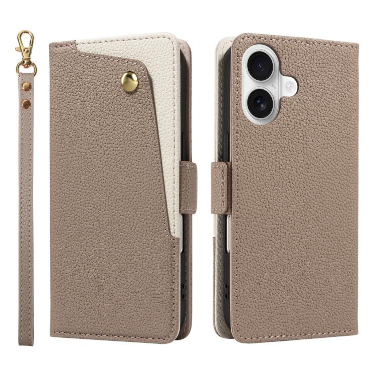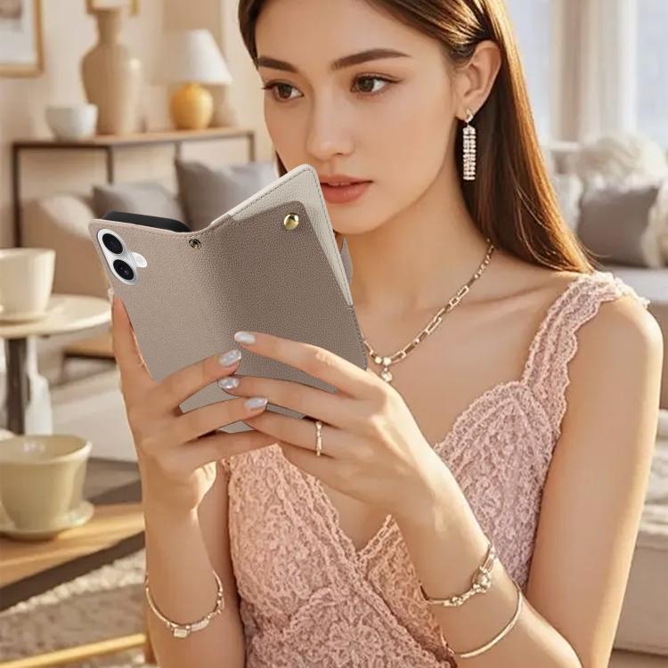 Funda de piel con textura de lichi y espejo para iPhone 17 (marrón)