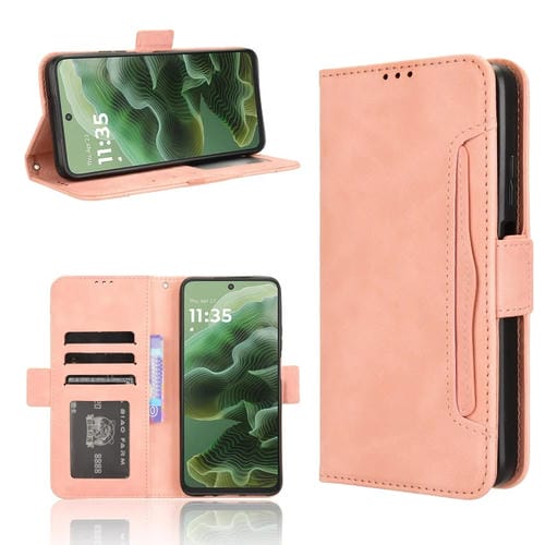 Funda de Piel con Textura de Becerro y Ranuras para Tarjetas para Motorola Moto G35 5G (Rosa)