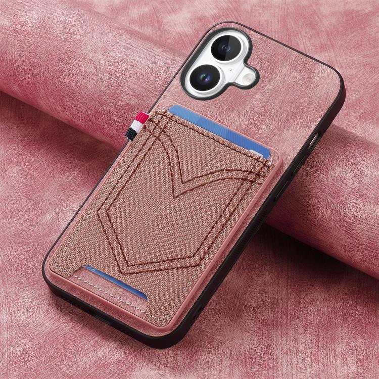 Funda de piel con textura vaquera para iPhone 17 con ranura para tarjetas (rosa)