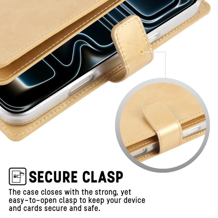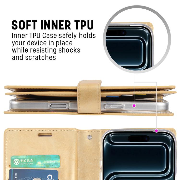 Funda de piel GOOSPERY MANSOOR DIARY para iPhone 17 Pro Max con 9 ranuras para tarjetas (dorada)