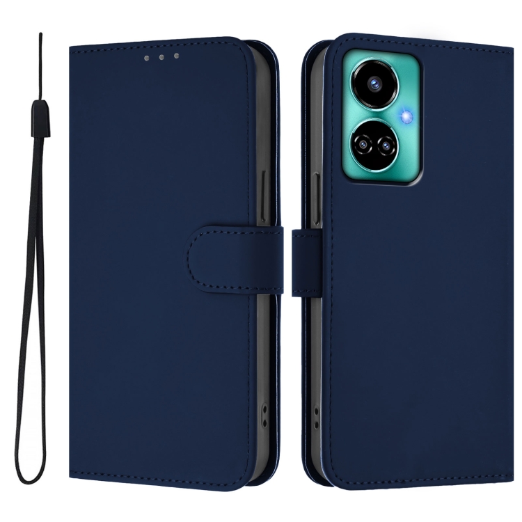 Funda de Piel para Tecno Camon 19/19 Pro 5G con Textura Liso y Cordón (Azul Marino)