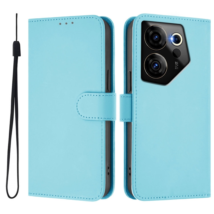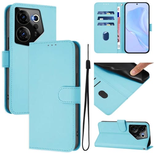 Funda de Piel con Textura y Cordón para Tecno Camon 20 Premier 5G (Azul Cielo)
