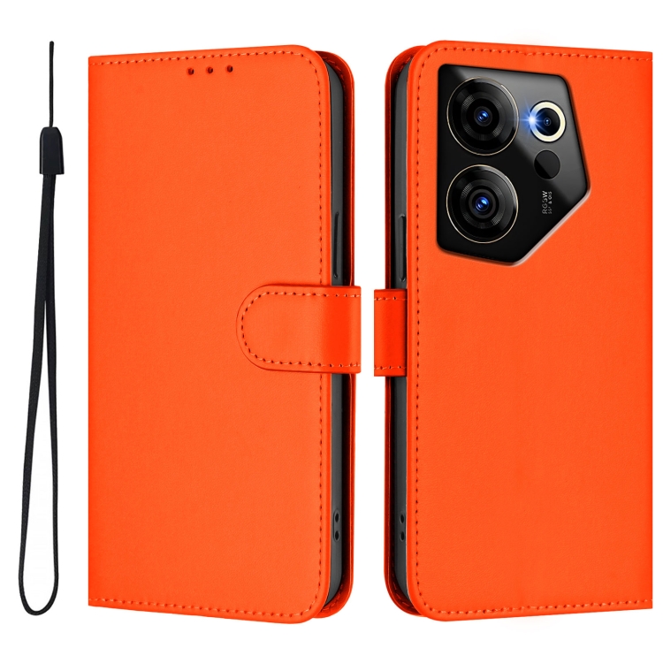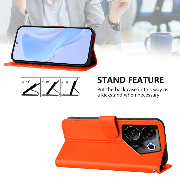 Funda de Piel con Textura y Cordón para Tecno Camon 20 Premier 5G (Naranja)