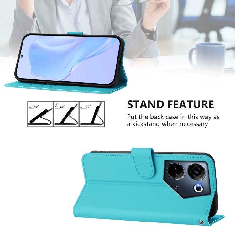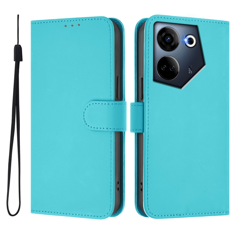 Funda de Piel para Tecno Camon 20 Pro 4G con Textura Lisa y Cordón (Azul Lago)