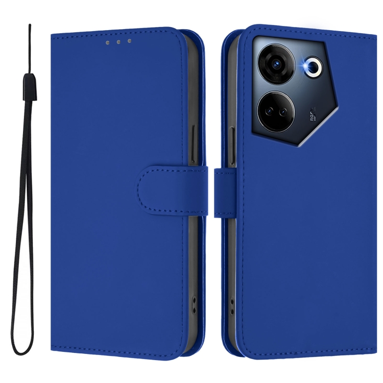 Funda de Piel para Tecno Camon 20 Pro 4G con Textura Lisa y Cordón (Azul Oscuro)