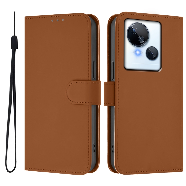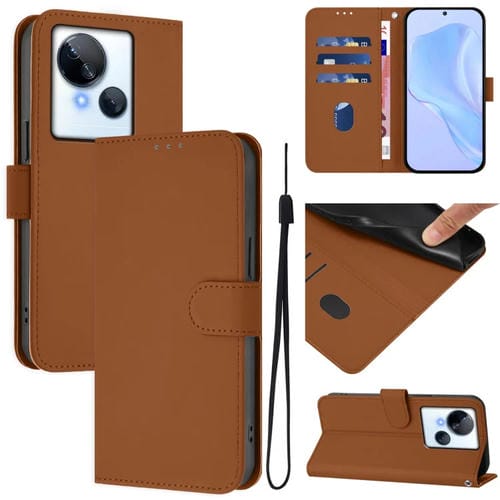 Funda de Cuero para Tecno Spark 10 5G con Textura de Piel y Cordón (Marrón)