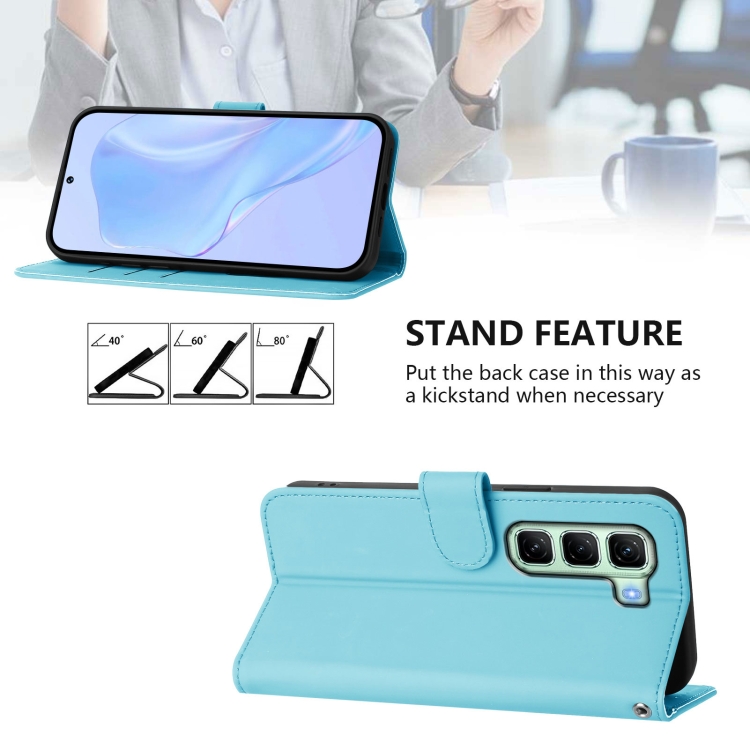 Funda de Piel Sintética con Cordón para Teléfono Infinix Hot 50 5G (Azul Cielo)
