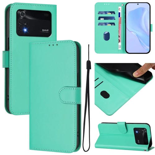 Funda de Piel Sintética con Cordón para Xiaomi Poco M4 Pro 4G (Verde)