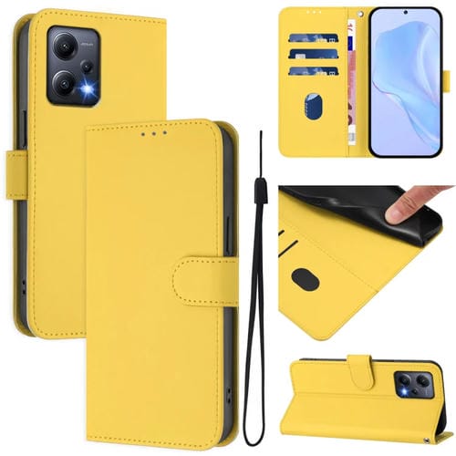 Funda de Piel Sintética con Cordón para Xiaomi Poco X5 (Amarillo Limón)