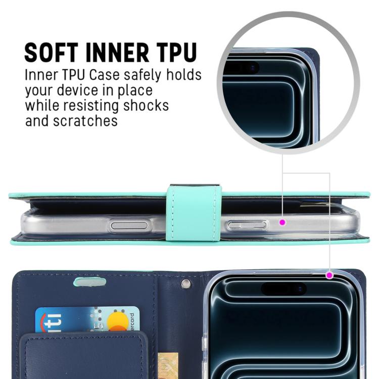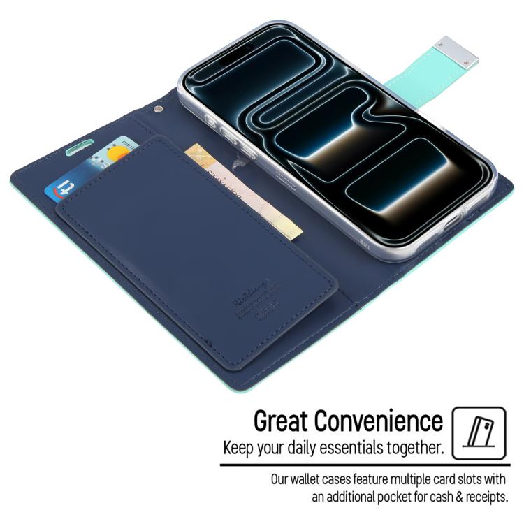 Funda de piel texturizada Crazy Horse GOOSPERY RICH DIARY para iPhone 17 Pro Max (Verde menta)