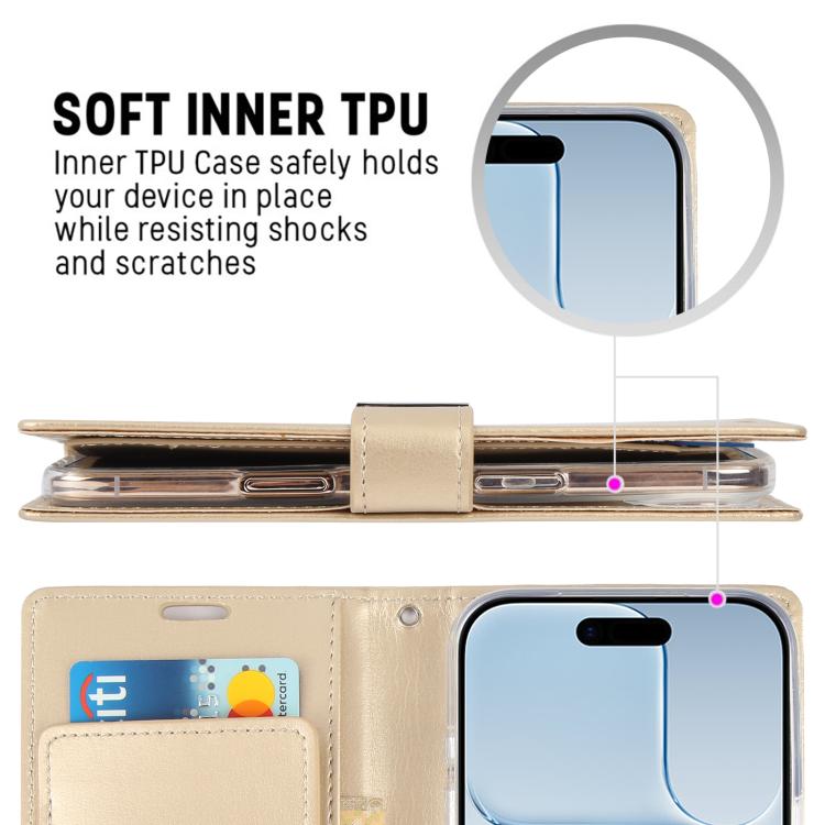 Funda de piel texturizada Crazy Horse para iPhone Air GOOSPERY RICH DIARY (Dorada)