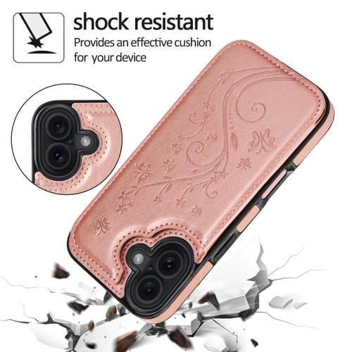 Funda de PU con doble hebilla y estampado de mariposa para iPhone 17 (dorada)