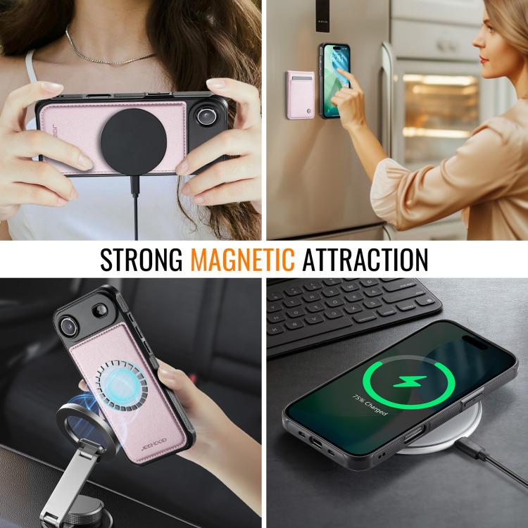 Funda de PU estilo británico para iPhone Air JEEHOOD J06 con tarjetero RFID MagSafe (rosa)