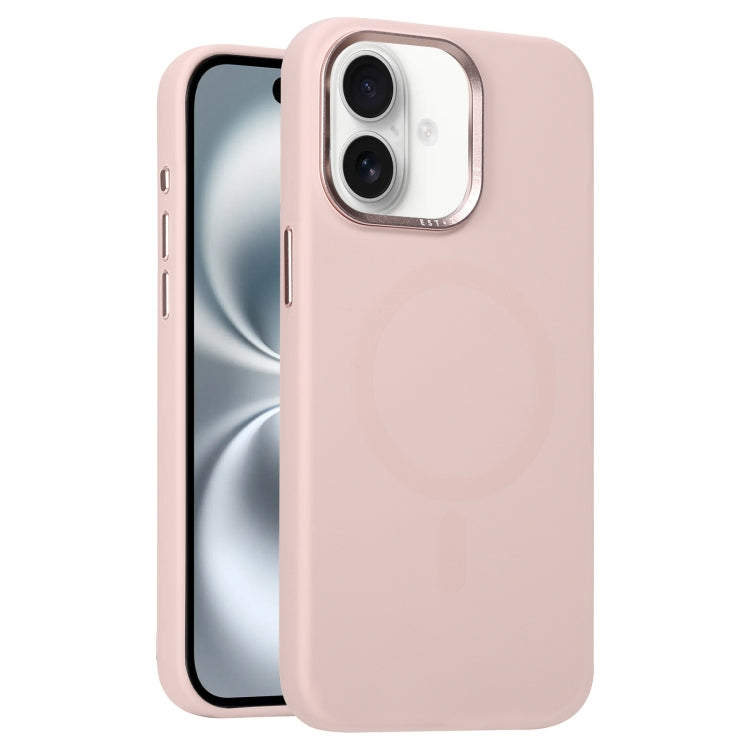 Funda de Silicona Líquida con Marco de Metal y Magsafe para iPhone 16 (Rosa)