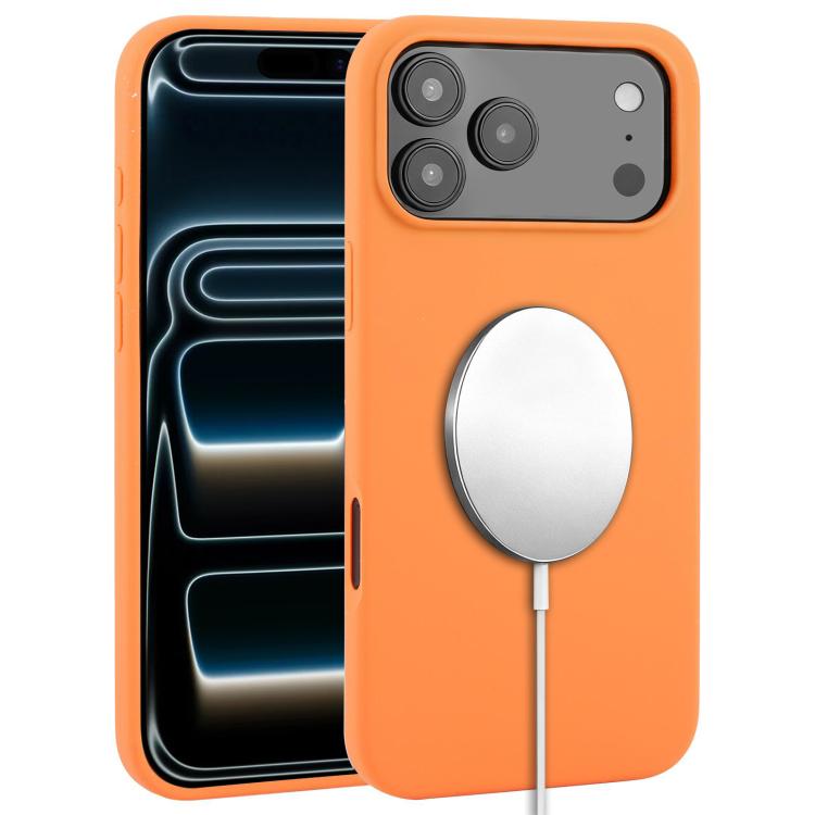 Funda de silicona líquida MagSafe de cobertura total para iPhone 17 Pro Max (naranja)