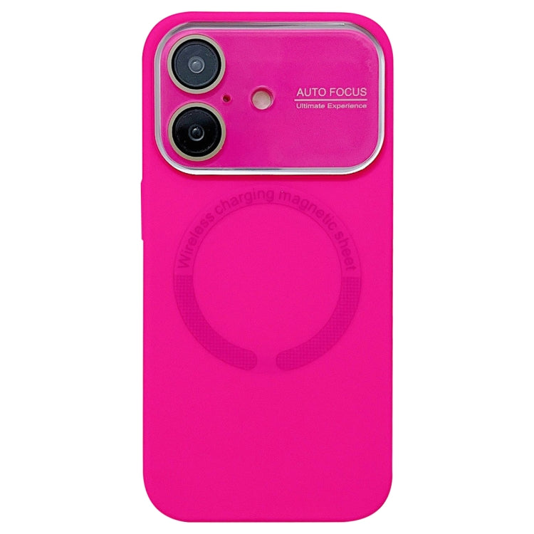Funda de Silicona Magsafe para iPhone 16 con Lente de Vidrio Acrílico Ventana Grande (Rojo Rosa)