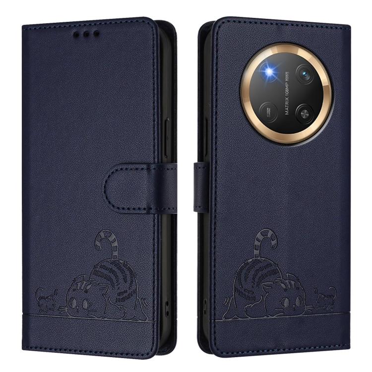 Funda Teléfono Honor X9C 5G Global Cuero Rfid con Cordón Patrón Gato y Rata (Azul)