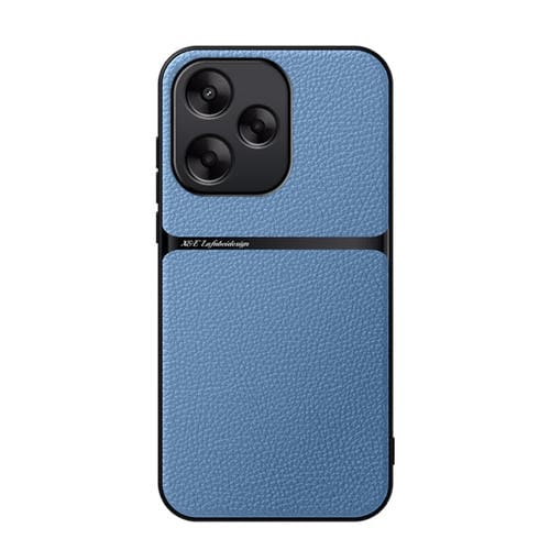 Funda de Teléfono con Tapa Magnética de Cuero Litchi para Redmi 13 4G/Xiaomi Poco M6 4G, a Prueba de Golpes (Azul)