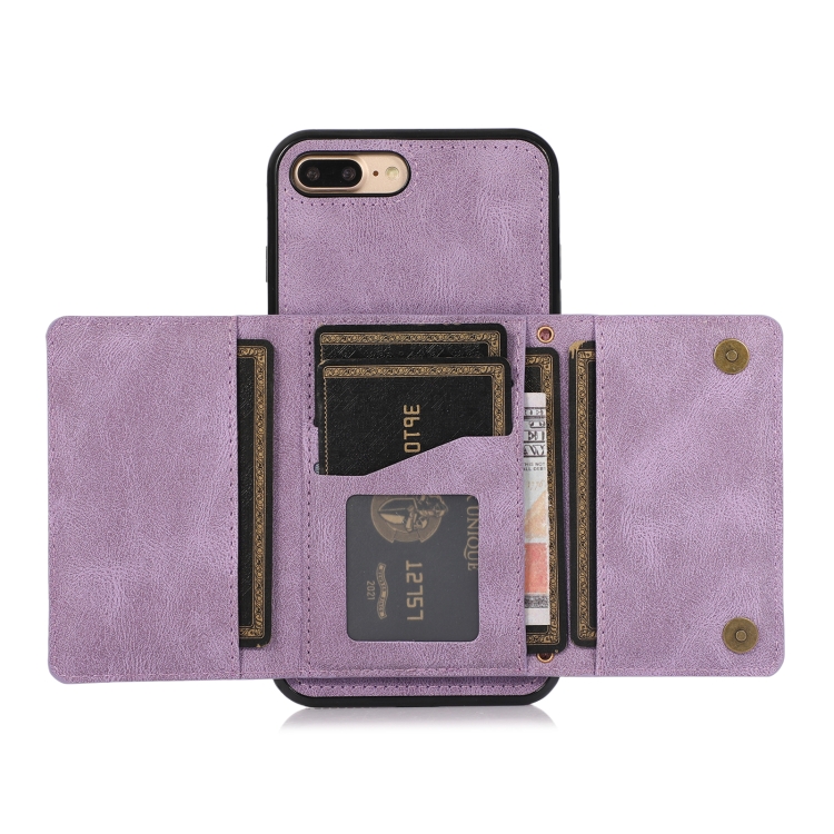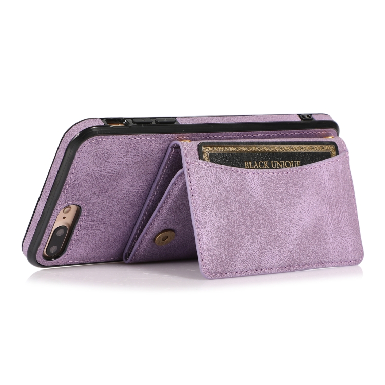 Funda de Teléfono Cuero Tridimensional iPhone 8 Plus y 7 Plus Ranura Tarjeta Billetera Soporte (Púrpura)